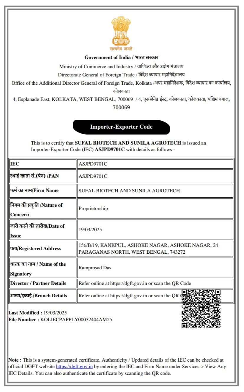 Together, SUFAL BIOTECH and SUNILA AGROTECH aim to: Bridge the gap between science and soil, by combining innovation and tradition. Offer a complete spectrum of agricultural solutions, from lab-based research to field implementation. Promote climate-smart, sustainable agriculture that preserves resources and uplifts farmer livelihoods. Ensure every product is affordable, accessible, and agriculturally effective.